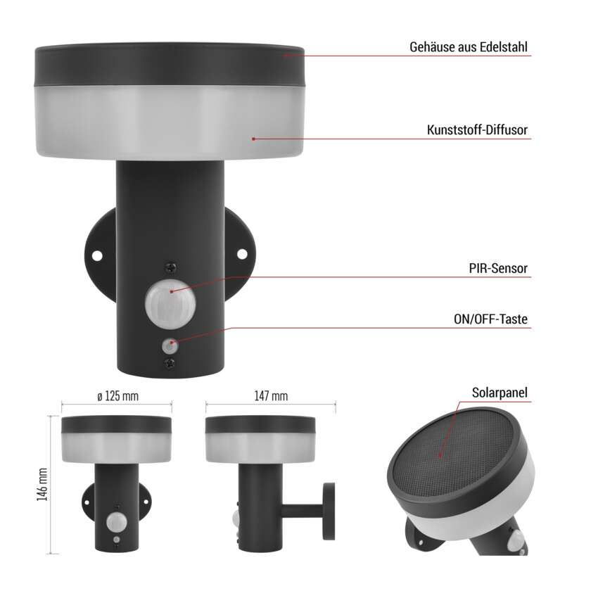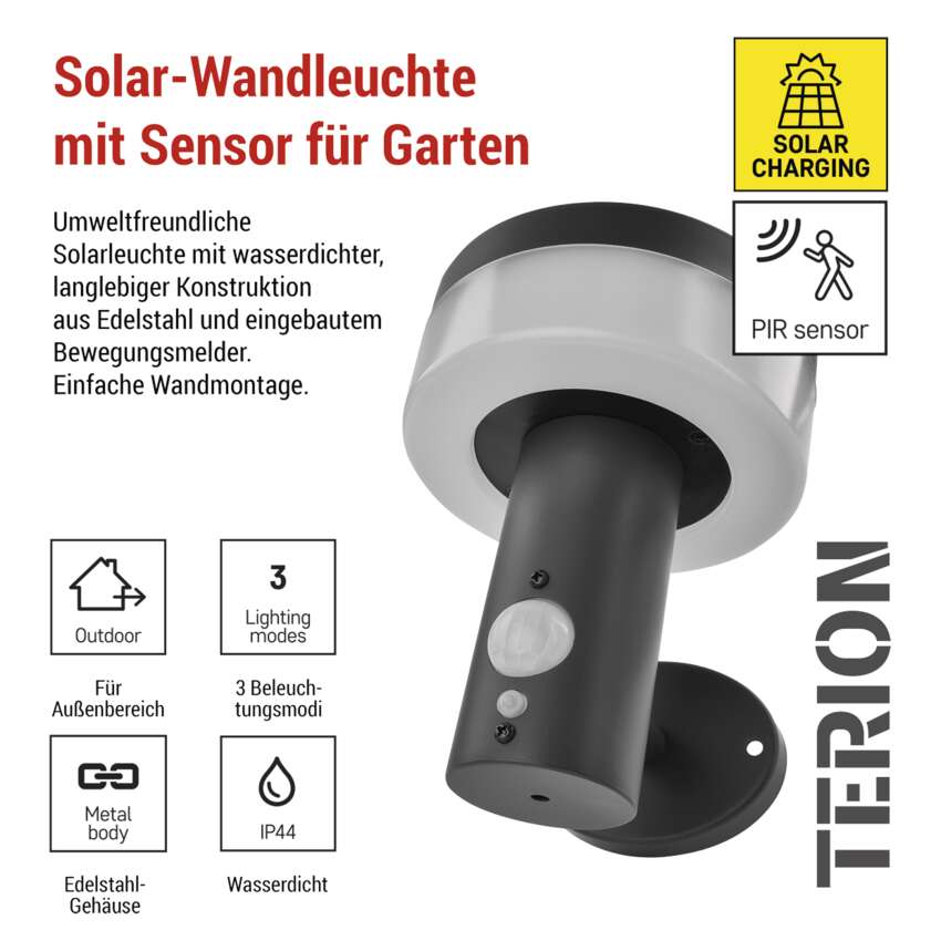 LED Solar-Garten-Wandleuchte TERION mit Dämmerungssensor, 12,5 x 14,7 x 14,6 cm
