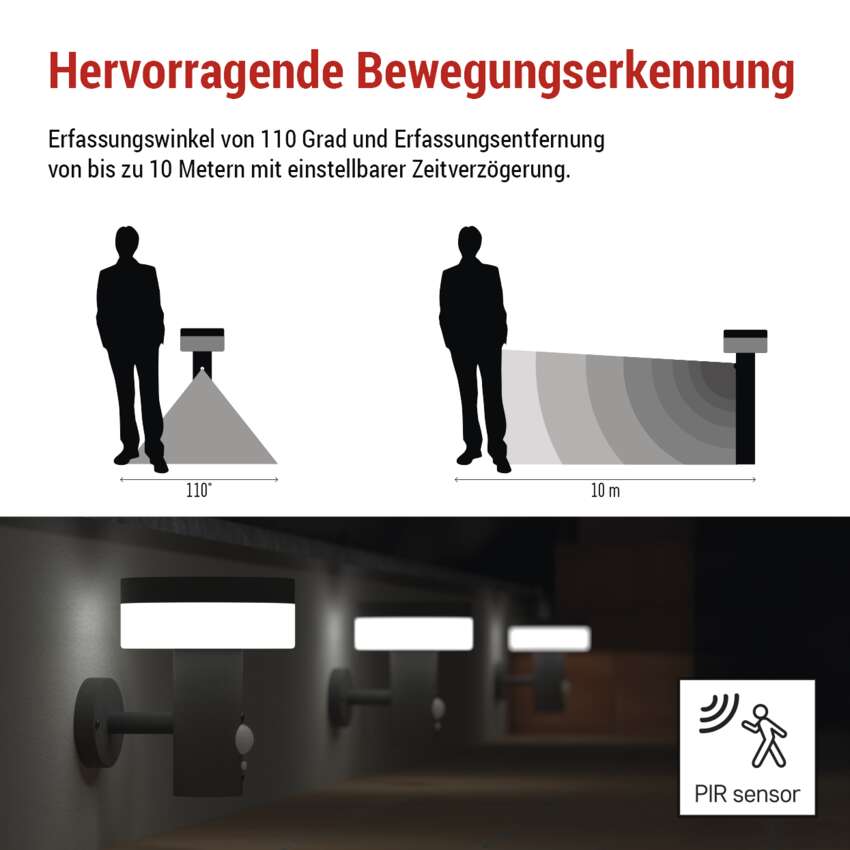 Die TERION-Serie ist die ideale Wahl für alle, die eine Kombination aus auffälligem Aussehen und zuverlässiger Leistung suchen. Ihr modernes Design wird jedem Außenbereich einen unverwechselbaren Charakter verleihen. In dieser Serie finden Sie eine Wand- und zwei Säulenleuchten, alle mit integriertem PIR-Sensor. Sie bieten kabellosen Betrieb ohne Netzanschluss. Sie sind ideal für alle, die einen schön beleuchteten Garten mit dem Schwerpunkt auf Sparsamkeit und Einfachheit wünschen.