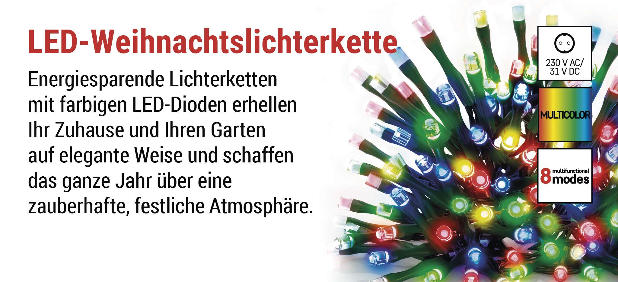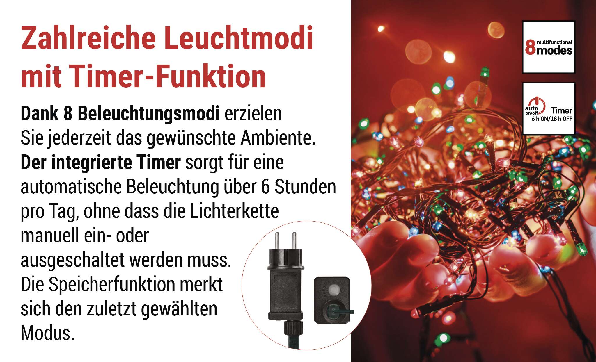 LED Weihnachtliche Lichterkette, 4 m, Außen/Innen, Multicolor, Programme, Timer