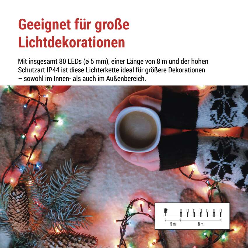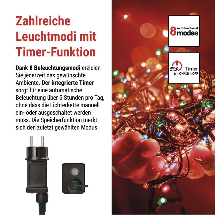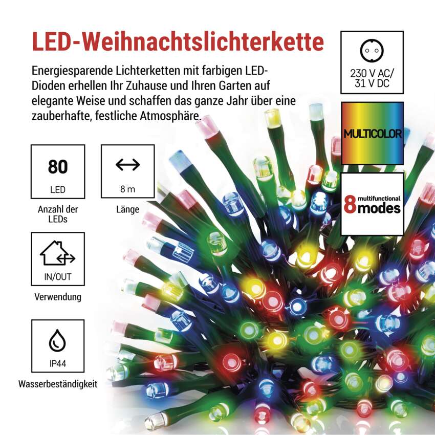 LED Weihnachtliche Lichterkette, 8 m, Außen/Innen, Multicolor, Programme, Timer
