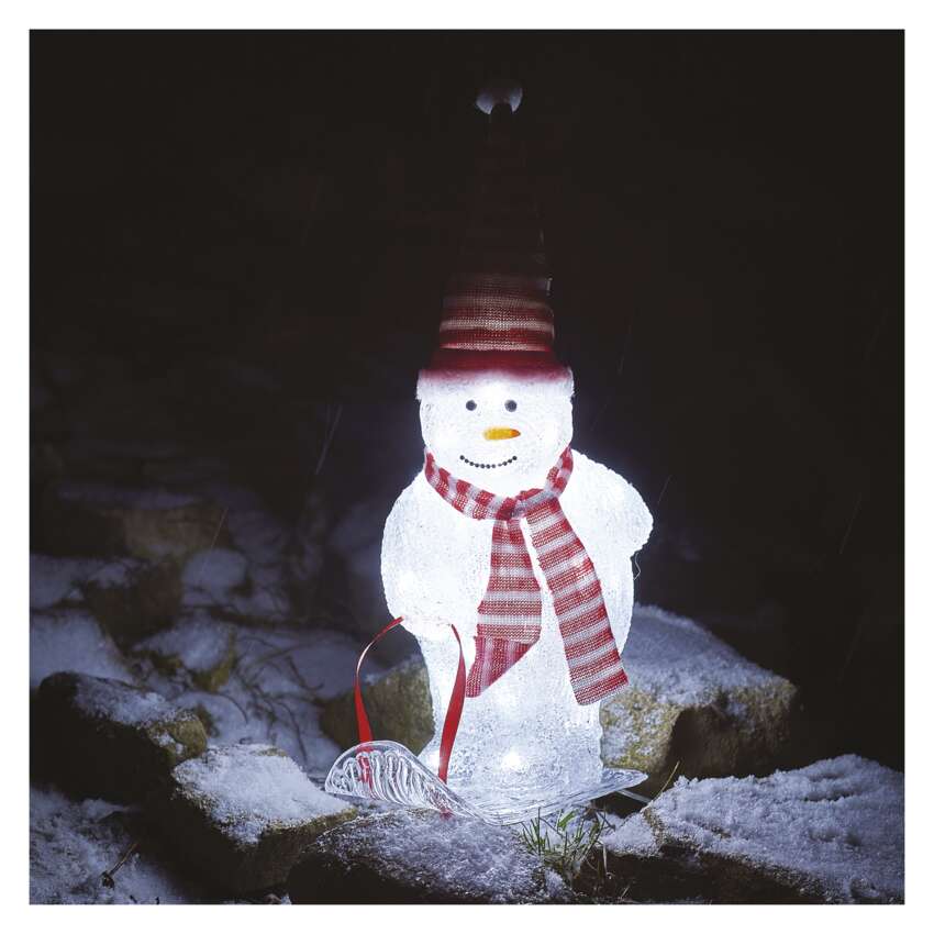 Der niedliche Schneemann mit Mütze und Schal wird sicherlich die Aufmerksamkeit aller Besucher Ihres Gartens und Hauses auf sich ziehen und eine unverwechselbare Weihnachtsatmosphäre schaffen. Dank seines hochwertigen Acryldesigns und seiner erhöhten Wasserbeständigkeit hält er Regen und Schnee stand und wird dir viele Jahre lang dienen.