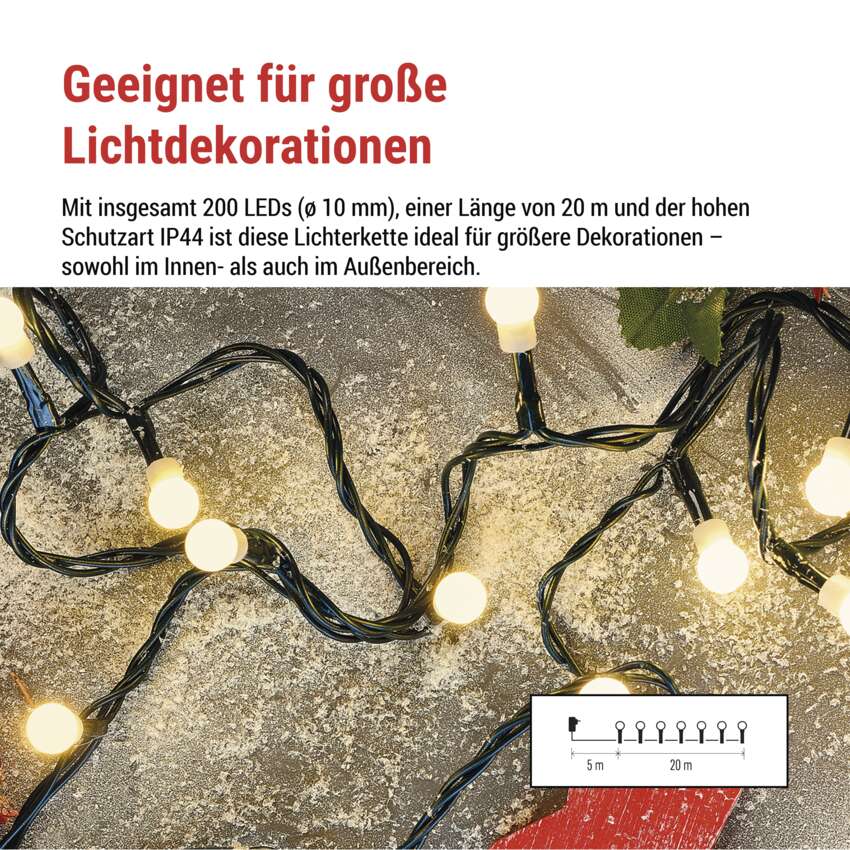 LED Weihnachtslichterkette Cherry – Kugeln, 20 m, Außen und Innen,warmweiß,Programme,Timer