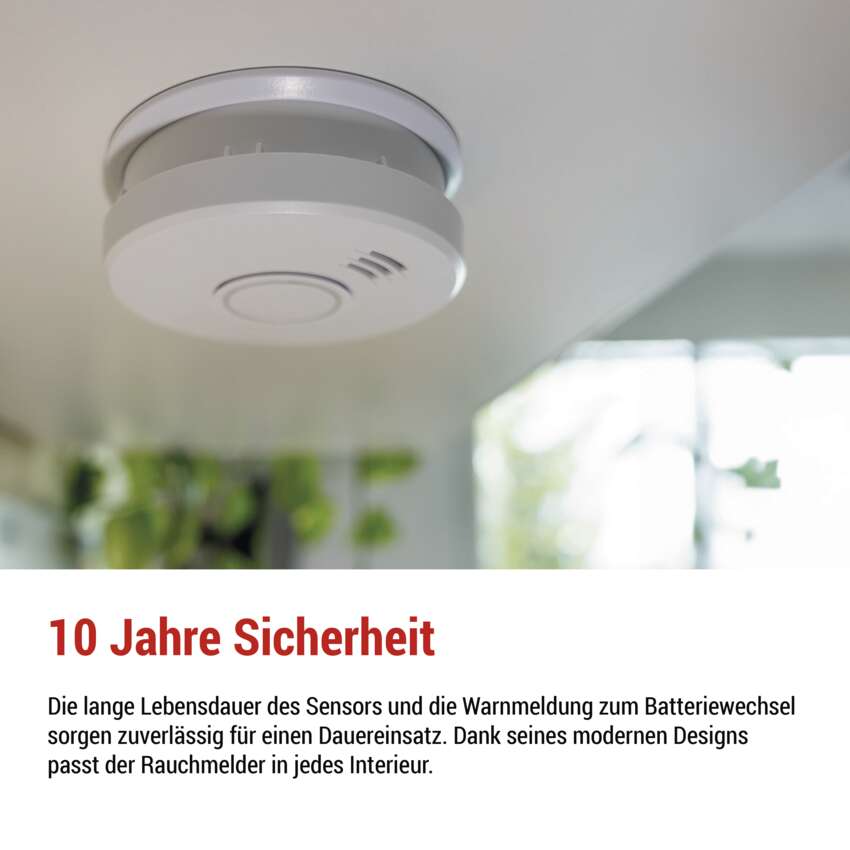 Unser Rauchmelder ist so konzipiert, dass er maximale Sicherheit und Zuverlässigkeit bietet. Mit optischen und akustischen Alarmen macht er Sie sofort auf Gefahren aufmerksam. Der 85 dB laute Alarm ist die ideale Wahl auch für größere Räume und sorgt dafür, dass Sie immer rechtzeitig informiert werden. Dieser Melder zeichnet sich durch niedrige Betriebskosten und eine lange Sensorlebensdauer von bis zu 10 Jahren aus. Das moderne und elegante Design passt in jedes Interieur.