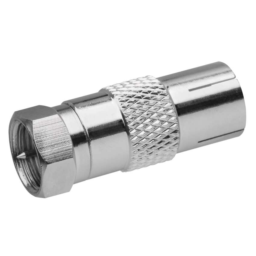 Adapter F-Stecker auf IEC-Buchse M5850. Der Adapter dient dem Anschluss ans Koaxialkabel.