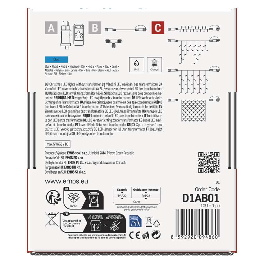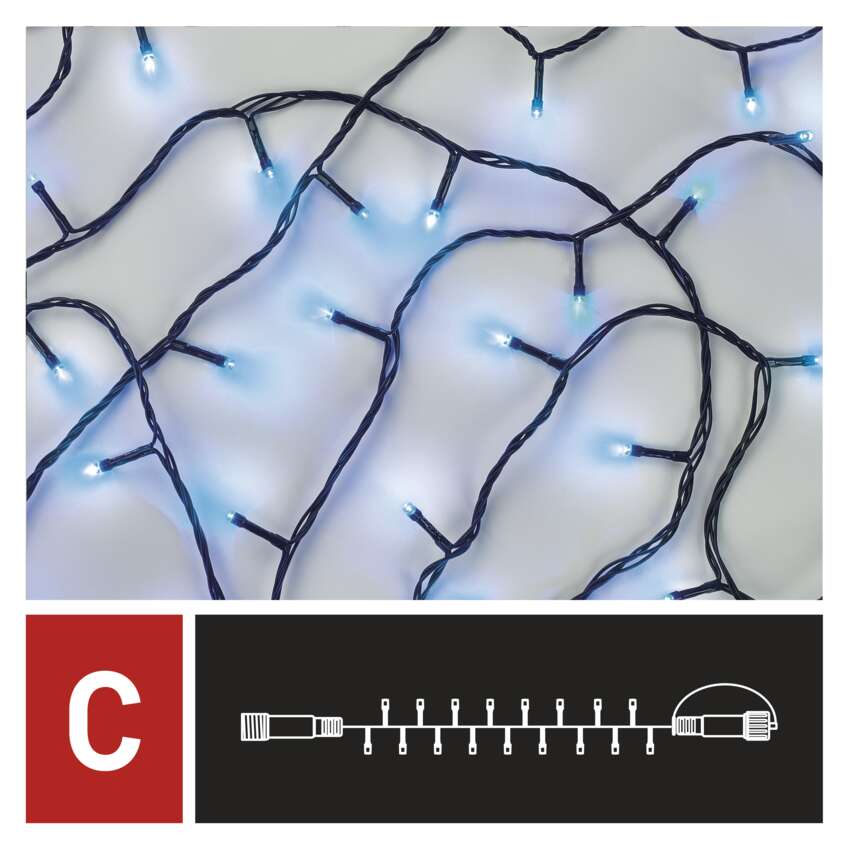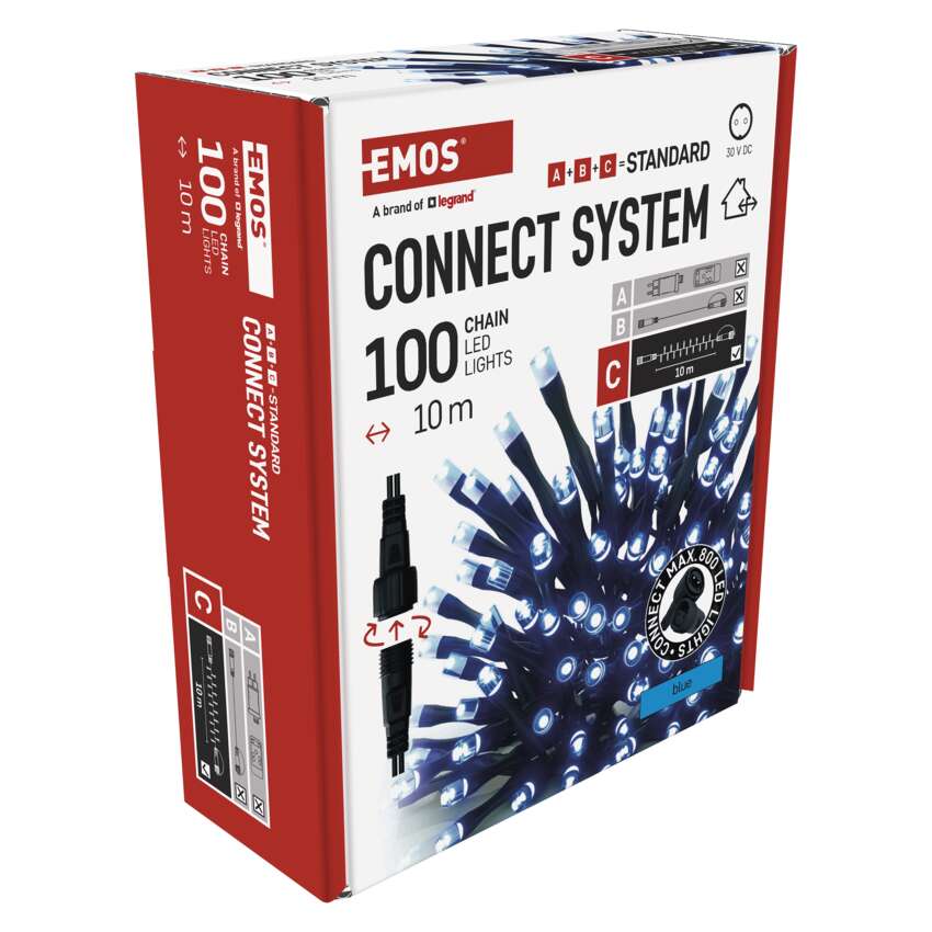 Das Anschlusssystem CONNECT SYSTEM STANDARD ist sowohl für den Innen- als auch für den Außenbereich geeignet auf Grund der Schutzart IP44, jedoch nur saisonal, nicht ganzjährig. Der Vorteil dieses Anschlusssystems ist die große Auswahl an LED-Leuchtelementen (C) in mehreren Farben. Obwohl die beliebteste Weihnachtsbeleuchtung die Kette ist, können Sie beim Verbindungssystem zwischen Stalaktiten, Vorhängen, Netzen oder Sternen für die Spitze des Weihnachtsbaums wählen, ganz nach Ihren eigenen Gestaltungswünschen. Von einer einzigen Stromversorgung (A), die an Verlängerungskabel, Hubs (B) und LED-Leuchtelemente(C) können bis zu 800 LED-Leuchten betreiben.