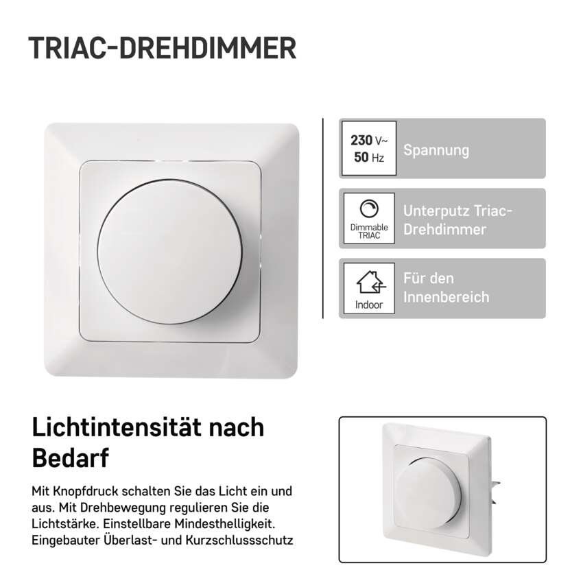 | Produkt | Dimmer für regulierbare LED-Lampen, Drehregler und Drückschalter |