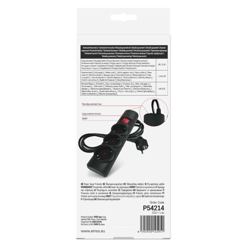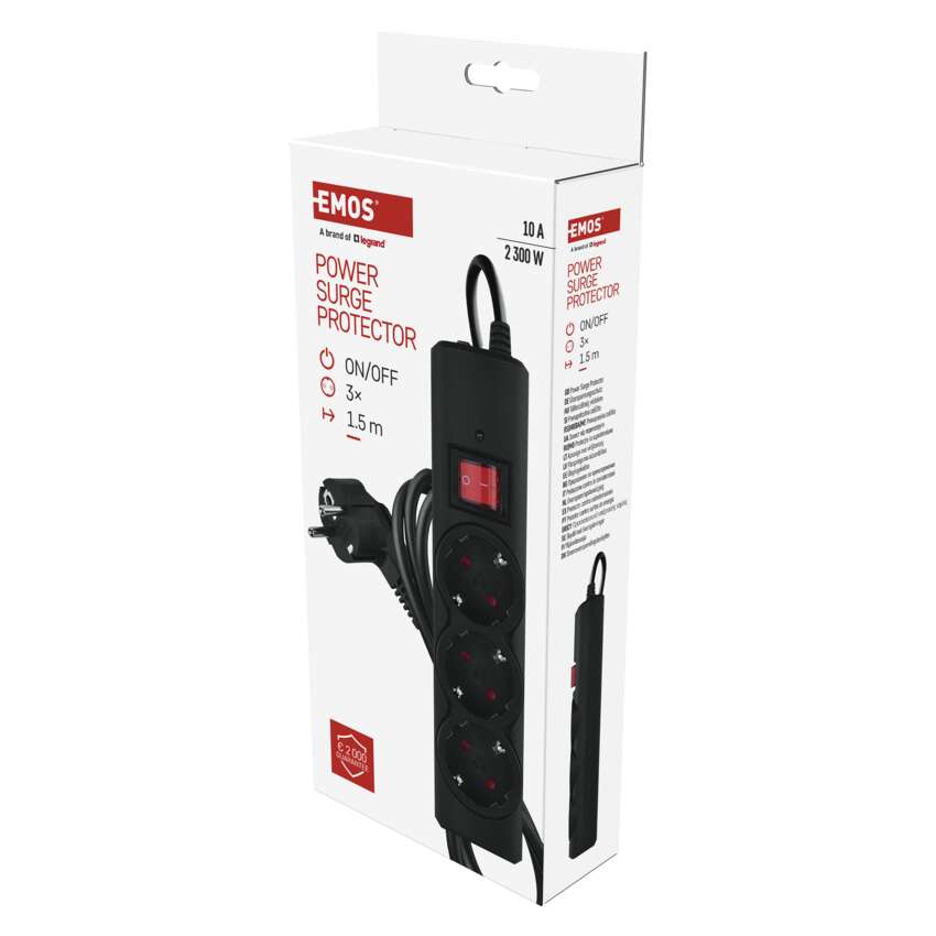Hochwertiger Überspannungsschutz mit 3 Steckdosen, 1,5 m langem PVC Kabel mit 1,5 mm² Leiter und praktischem Schalter. Schützt die angeschlossenen Geräte vor Überspannung und Stromstößen. Die maximale Belastung von 2.300 W (10 A) ermöglicht den sicheren gleichzeitigen Betrieb mehrerer Geräte in Innenräumen. Wiedereinschaltbare Sicherung - einfache Wiederherstellung der Stromversorgung nach Überlastung.