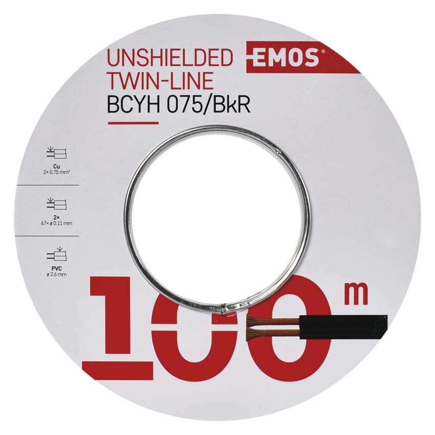 Das Pair-Kabel ohne Schirm mit einem Querschnitt von 2 × 0,75 mm2. Die Farbe der Doppelleitung ist schwarz. Isolierung mit einem Leiter, welcher mit einem roten Streifen markiert ist. Die Kabelummantelung besteht aus PVC.