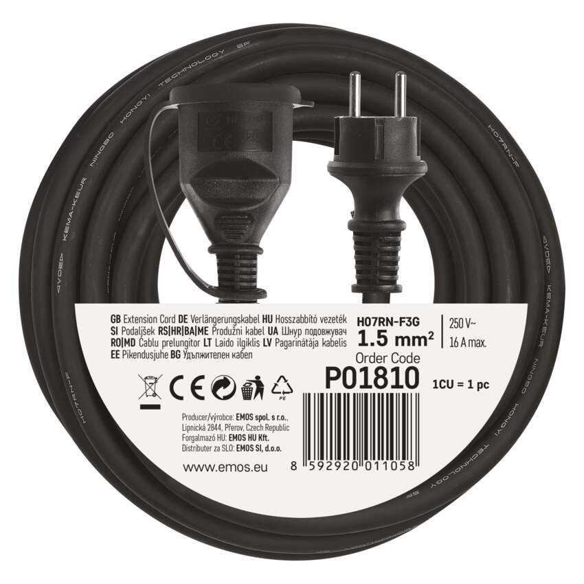 Das SCHUKO-Verlängerungskabel aus Gummi mit einer Länge von 10 m für 250 V~ dient zur Verlängerung der Stromzufuhr an solche Stellen, wo eine feste Steckdose nicht hinlangt.